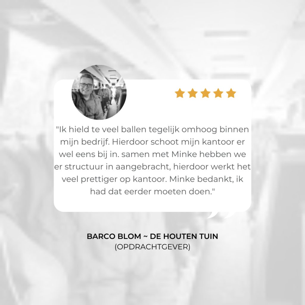 Schakel mij dan in! Ik, Minke Brandsma, ben er voor ondernemers en organisaties, die last hebben van chaos en het overzicht kwijt zijn.
